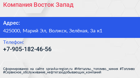 Компания Восток-Запад по адресу 425000, Марий Эл, Волжск, Зелёная, 3а к1 в дальнейшем Организация, размещена в следующих категориях: