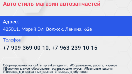 Авто-стиль, магазин автозапчастей по адресу 425011, Марий Эл, Волжск, Ленина, 62е в дальнейшем Организация, размещена в следующих категориях: