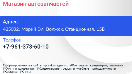 Магазин автозапчастей по адресу 425032, Марий Эл, Волжск, Станционная, 15Б в дальнейшем Организация, размещена в следующих категориях: