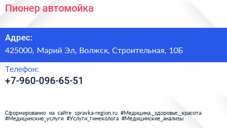 Пионер, автомойка по адресу 425000, Марий Эл, Волжск, Строительная, 10Б в дальнейшем Организация, размещена в следующих категориях:
