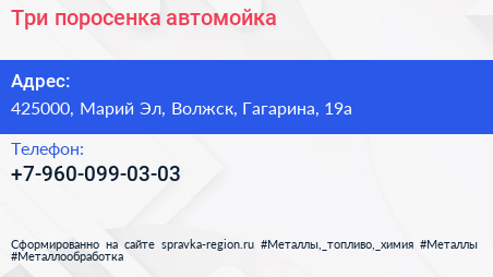 Три поросенка, автомойка по адресу 425000, Марий Эл, Волжск, Гагарина, 19а в дальнейшем Организация, размещена в следующих категориях: