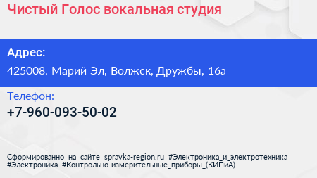 Чистый Голос, вокальная студия по адресу 425008, Марий Эл, Волжск, Дружбы, 16а в дальнейшем Организация, размещена в следующих категориях: