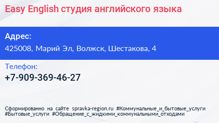 Easy English, студия английского языка по адресу 425008, Марий Эл, Волжск, Шестакова, 4 в дальнейшем Организация, размещена в следующих категориях: