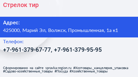 Стрелок, тир по адресу 425000, Марий Эл, Волжск, Промышленная, 1а к1 в дальнейшем Организация, размещена в следующих категориях: