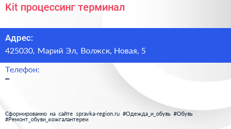Kit процессинг, терминал по адресу 425030, Марий Эл, Волжск, Новая, 5 в дальнейшем Организация, размещена в следующих категориях: