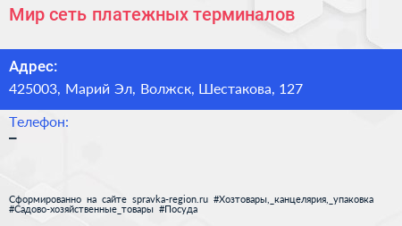 Мир, сеть платежных терминалов по адресу 425003, Марий Эл, Волжск, Шестакова, 127 в дальнейшем Организация, размещена в следующих категориях: