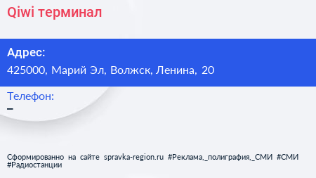 Qiwi, терминал по адресу 425000, Марий Эл, Волжск, Ленина, 20 в дальнейшем Организация, размещена в следующих категориях: