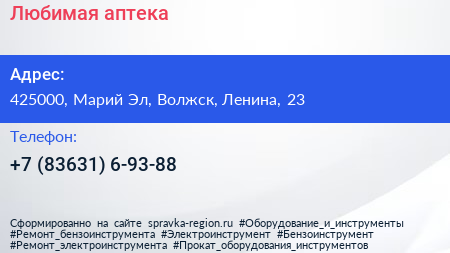 Любимая аптека по адресу 425000, Марий Эл, Волжск, Ленина, 23 в дальнейшем Организация, размещена в следующих категориях: