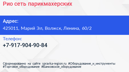 Рио, сеть парикмахерских по адресу 425011, Марий Эл, Волжск, Ленина, 60/2 в дальнейшем Организация, размещена в следующих категориях: