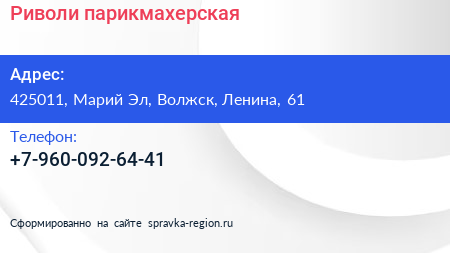 Риволи, парикмахерская по адресу 425011, Марий Эл, Волжск, Ленина, 61 в дальнейшем Организация, размещена в следующих категориях:
