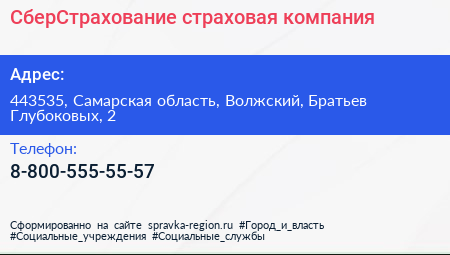 СберСтрахование, страховая компания по адресу 443535, Самарская область, Волжский, Братьев Глубоковых, 2 в дальнейшем Организация, размещена в следующих категориях: