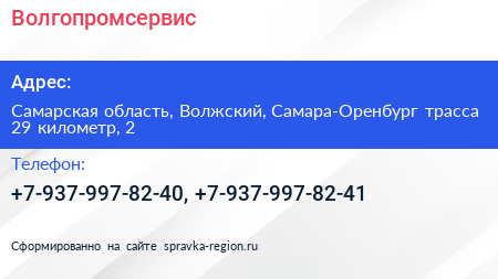 Волгопромсервис по адресу Самарская область, Волжский, Самара-Оренбург трасса 29 километр, 2 в дальнейшем Организация, размещена в следующих категориях: