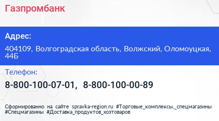 Газпромбанк по адресу 404109, Волгоградская область, Волжский, Оломоуцкая, 44Б в дальнейшем Организация, размещена в следующих категориях: