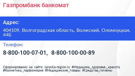 Газпромбанк, банкомат по адресу 404109, Волгоградская область, Волжский, Оломоуцкая, 44Б в дальнейшем Организация, размещена в следующих категориях: