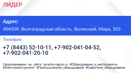 ЛИДЕР по адресу 404109, Волгоградская область, Волжский, Мира, 103 в дальнейшем Организация, размещена в следующих категориях: