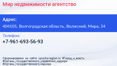 Мир недвижимости, агентство по адресу 404105, Волгоградская область, Волжский, Мира, 54 в дальнейшем Организация, размещена в следующих категориях: