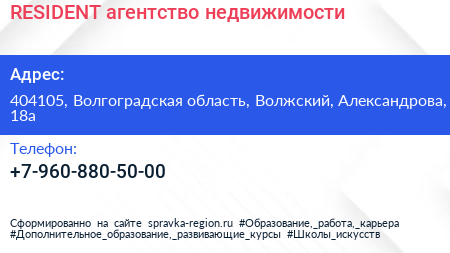 RESIDENT, агентство недвижимости по адресу 404105, Волгоградская область, Волжский, Александрова, 18а в дальнейшем Организация, размещена в следующих категориях: