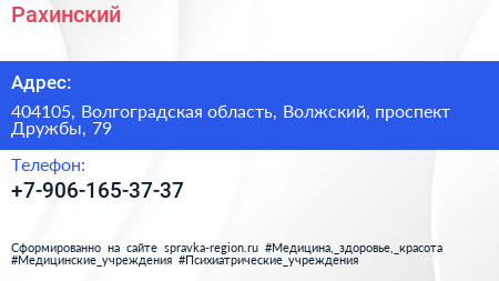 Рахинский по адресу 404105, Волгоградская область, Волжский, проспект Дружбы, 79 в дальнейшем Организация, размещена в следующих категориях: