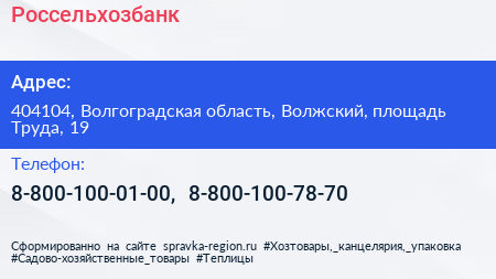 Россельхозбанк по адресу 404104, Волгоградская область, Волжский, площадь Труда, 19 в дальнейшем Организация, размещена в следующих категориях: