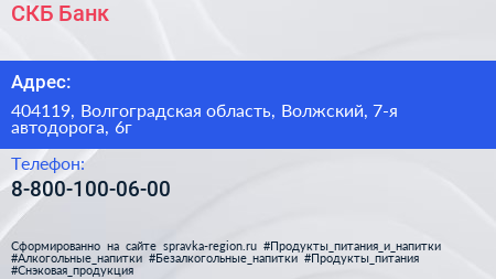 СКБ-Банк по адресу 404119, Волгоградская область, Волжский, 7-я автодорога, 6г в дальнейшем Организация, размещена в следующих категориях: