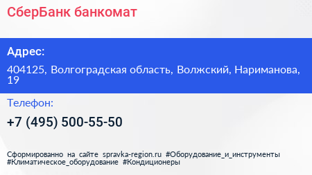 СберБанк, банкомат по адресу 404125, Волгоградская область, Волжский, Нариманова, 19 в дальнейшем Организация, размещена в следующих категориях: