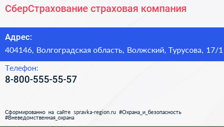 СберСтрахование, страховая компания по адресу 404146, Волгоградская область, Волжский, Турусова, 17/1 в дальнейшем Организация, размещена в следующих категориях: