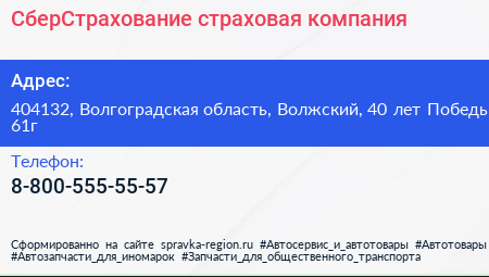 СберСтрахование, страховая компания по адресу 404132, Волгоградская область, Волжский, 40 лет Победы, 61г в дальнейшем Организация, размещена в следующих категориях: