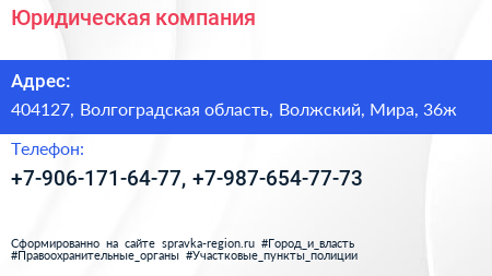 Юридическая компания по адресу 404127, Волгоградская область, Волжский, Мира, 36ж в дальнейшем Организация, размещена в следующих категориях:
