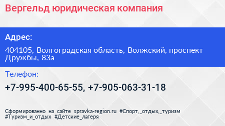 Вергельд, юридическая компания по адресу 404105, Волгоградская область, Волжский, проспект Дружбы, 83а в дальнейшем Организация, размещена в следующих категориях: