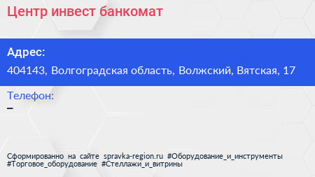 Центр-инвест, банкомат по адресу 404143, Волгоградская область, Волжский, Вятская, 17 в дальнейшем Организация, размещена в следующих категориях: