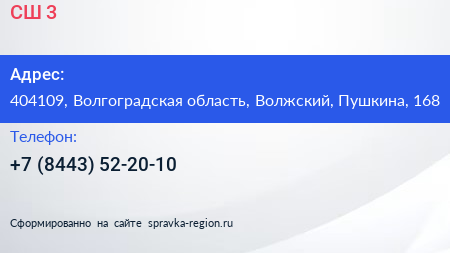 СШ №3 по адресу 404109, Волгоградская область, Волжский, Пушкина, 168 в дальнейшем Организация, размещена в следующих категориях: