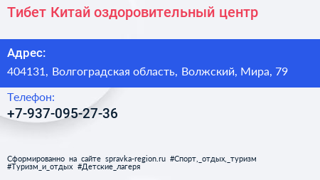 Тибет-Китай, оздоровительный центр по адресу 404131, Волгоградская область, Волжский, Мира, 79 в дальнейшем Организация, размещена в следующих категориях: