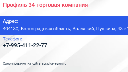 Профиль-34, торговая компания по адресу 404130, Волгоградская область, Волжский, Пушкина, 43 к1 в дальнейшем Организация, размещена в следующих категориях: