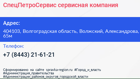 СпецПетроСервис, сервисная компания по адресу 404103, Волгоградская область, Волжский, Александрова, 65м в дальнейшем Организация, размещена в следующих категориях: