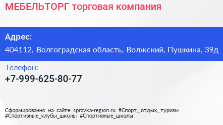 МЕБЕЛЬТОРГ, торговая компания по адресу 404112, Волгоградская область, Волжский, Пушкина, 39д в дальнейшем Организация, размещена в следующих категориях: