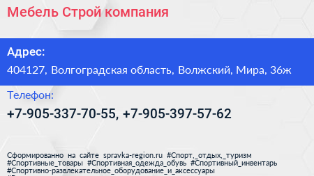 Мебель Строй, компания по адресу 404127, Волгоградская область, Волжский, Мира, 36ж в дальнейшем Организация, размещена в следующих категориях: