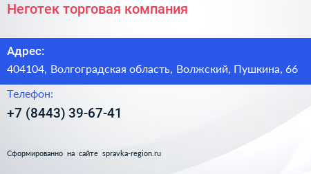 Неготек, торговая компания по адресу 404104, Волгоградская область, Волжский, Пушкина, 66 в дальнейшем Организация, размещена в следующих категориях:
