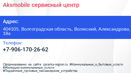 Aksmobile, сервисный центр по адресу 404105, Волгоградская область, Волжский, Александрова, 18а в дальнейшем Организация, размещена в следующих категориях: