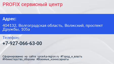 PROFIX, сервисный центр по адресу 404132, Волгоградская область, Волжский, проспект Дружбы, 105а в дальнейшем Организация, размещена в следующих категориях: