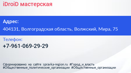 iDroiD, мастерская по адресу 404131, Волгоградская область, Волжский, Мира, 75 в дальнейшем Организация, размещена в следующих категориях:
