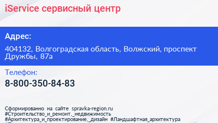 iService, сервисный центр по адресу 404132, Волгоградская область, Волжский, проспект Дружбы, 87а в дальнейшем Организация, размещена в следующих категориях:
