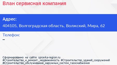 Влан, сервисная компания по адресу 404105, Волгоградская область, Волжский, Мира, 62 в дальнейшем Организация, размещена в следующих категориях: