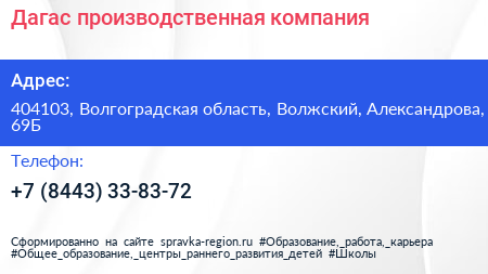 Дагас, производственная компания по адресу 404103, Волгоградская область, Волжский, Александрова, 69Б в дальнейшем Организация, размещена в следующих категориях: