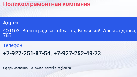 Поликом, ремонтная компания по адресу 404103, Волгоградская область, Волжский, Александрова, 78Б в дальнейшем Организация, размещена в следующих категориях:
