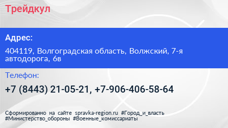 Трейдкул по адресу 404119, Волгоградская область, Волжский, 7-я автодорога, 6в в дальнейшем Организация, размещена в следующих категориях: