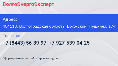 ВолгоЭнергоЭксперт по адресу 404118, Волгоградская область, Волжский, Пушкина, 174 в дальнейшем Организация, размещена в следующих категориях: