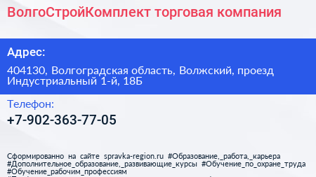 ВолгоСтройКомплект, торговая компания по адресу 404130, Волгоградская область, Волжский, проезд Индустриальный 1-й, 18Б в дальнейшем Организация, размещена в следующих категориях: