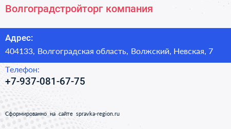 Волгоградстройторг, компания по адресу 404133, Волгоградская область, Волжский, Невская, 7 в дальнейшем Организация, размещена в следующих категориях: