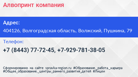 Алвопринт, компания по адресу 404126, Волгоградская область, Волжский, Пушкина, 79 в дальнейшем Организация, размещена в следующих категориях: