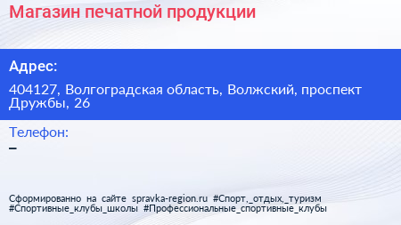 Магазин печатной продукции по адресу 404127, Волгоградская область, Волжский, проспект Дружбы, 26 в дальнейшем Организация, размещена в следующих категориях: